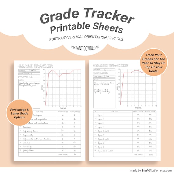 Grade Tracker Printable Goal Grade Tracking Letter Grade Etsy De